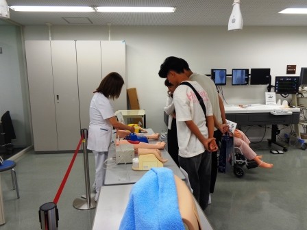 医学生に必要な医療行為全般の体験が可能な施設で、100種類を超える機器の中から、教員・学生スタッフが各日4つのブースでそれぞれの機器について説明し、参加者に実際に体験してもらいました。