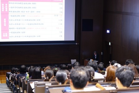 中川入試センター長から、次年度入試の内容やポイント、近年の志願者合格者状況について解説しました。