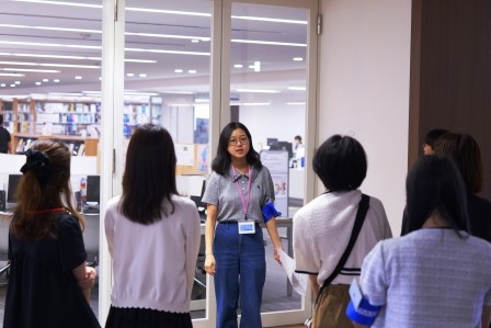 学生スタッフが医学部棟内の主な施設・設備を案内しました。