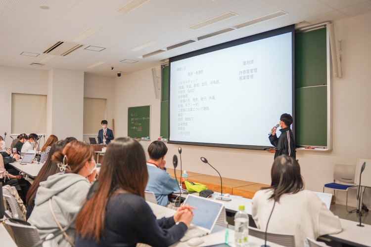 5月2日(金)9時30分から、医学部、看護学部、リハビリテーション学部の4学年(4年次)、摂南大学薬学部6年次生との合同授業が実施されました。4年次では本学が協定を結んでいる摂南大学と連携して、薬学部の学生にも参加してもらうことで、実際の医療現場により近い環境でチーム医療を考えます。