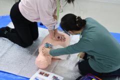 AEDを実際に使うのは初めてでしたが、一連の流れを学ぶことができました。汗をかくくらい疲労感もありました!(受講生より)