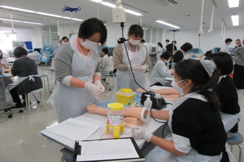 シミュレーターを使用し、静脈採血・静脈注射の演習を実施しました。受講生の方々は熱心に繰り返し練習されていました。