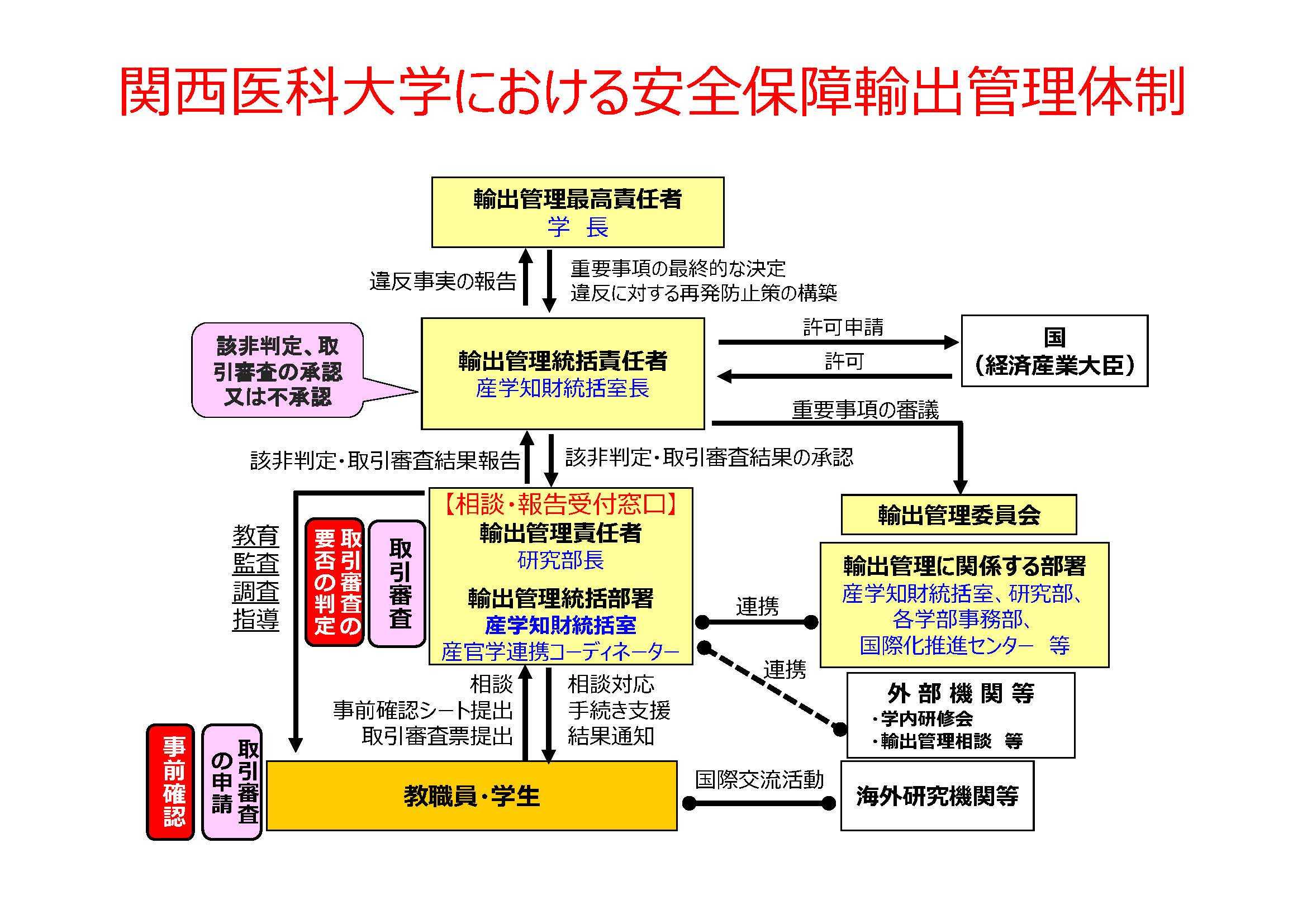 関西医科大学における安全保障輸出管理体制は下図のとおりです。